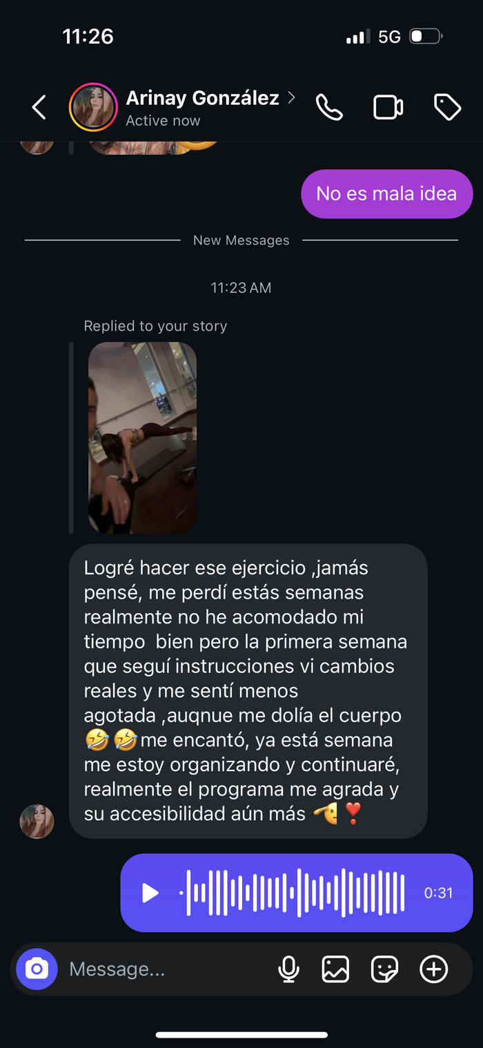 ¡Un programa de entrenamiento solo para ti! Personalizaré tu plan de entrenamiento de manera continua. Cada uno de los ejercicios han sido grabados para que los realices correctamente.